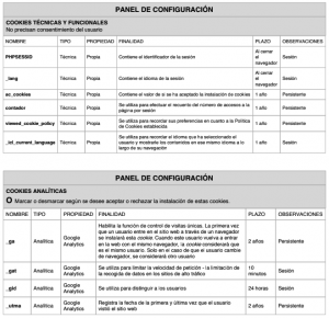 Conforme con la Ley 34/2002, de 11 de julio, de servicios de la sociedad de la información y de comercio electrónico (LSSI), en relación con el Reglamento (UE) 2016/679 del Parlamento Europeo y del Consejo, de 27 de abril de 2016, General de Protección de Datos (GDPR) y la Ley Orgánica 3/2018, de 5 de diciembre, de Protección de Datos y Garantía de los Derechos Digitales (LOPDGDD), es obligado obtener el consentimiento expreso del usuario de todas las páginas web que usan cookies prescindibles, antes de que este navegue por ellas.